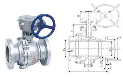 Q341F、Q341Y 型 PN40 蜗杆传动球阀主要外形及结构尺寸(mm):
